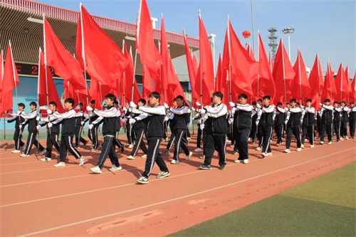 入场式结束后,全体师生面向国旗,举行了庄严的升旗仪式。
