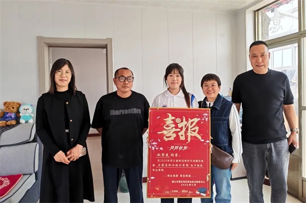 副校长杨景悦、现代服务系主任马青、副主任张青、单招综合班班主任吴卫华一行为单招综合班学生送去喜报,该班同学胡建宇、赵紫爽、孙仕婧以优异成绩被唐山工业职业技术学院、石家庄职业技术学院、唐山职业技术学院等河北省双高、骨干示范校录取,学生家长表示:“孩子能取得这样的成绩,我们感到非常骄傲。感谢学校的培养和老师们的辛勤付出,让孩子能够在职中优秀的学习环境中茁壮成长。”