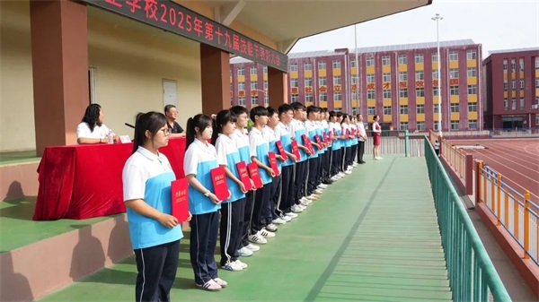 副校长娄新以铿锵有力的声音宣读获奖师生名单,每一个名字的念出,都像是在为奋斗者奏响的赞歌。随后,副校长董立新、纪委书记代宝军分别为学生代表与教师代表颁奖,那一本本凝聚着汗水与荣誉的证书,在阳光下熠熠生辉,不仅是对获奖者的肯定,更是对全体师生的激励。
