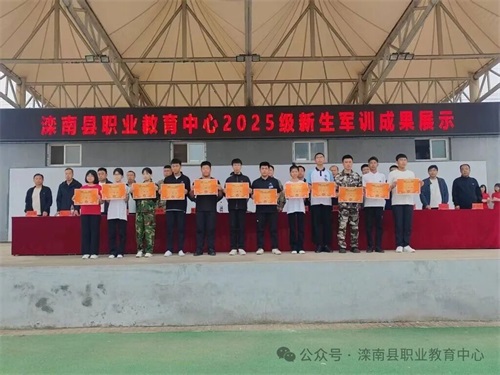 9月23日,滦南县职业教育中心举行2025级新生军训成果展示大会。县人民武装部军事科参谋尹金超、军训总教官贺春涛,滦南职教中心督学裴祥学,副校长张玉林、孟凡永、张新军,各处室部负责人、军训教官、班主任及全体新生共同参加了此次活动。大会由副校长张玉林主持,督学裴祥学担任总指挥。