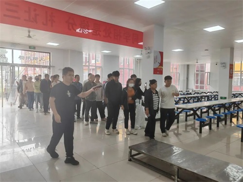 典礼结束后,家长们先后走进餐厅与宿舍。在餐厅,申颖亮老师介绍了每日菜品的营养搭配与卫生管理流程,家长们参观了烹饪环境;走进宿舍,整齐的被褥、有序摆放的生活用品映入眼帘,家长切实了解孩子在校的生活日常。