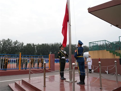 活动在庄严的升国旗仪式中拉开帷幕,鲜艳的五星红旗冉冉升起,全体人员肃立行礼,激昂的国歌声回荡在校园上空。