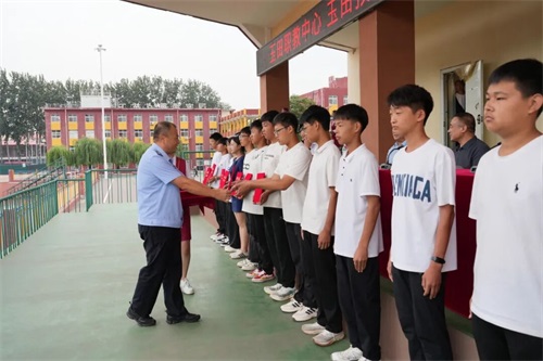 特聘法制副校长、玉田镇派出所指导员徐顺利为获奖学生代表颁奖;