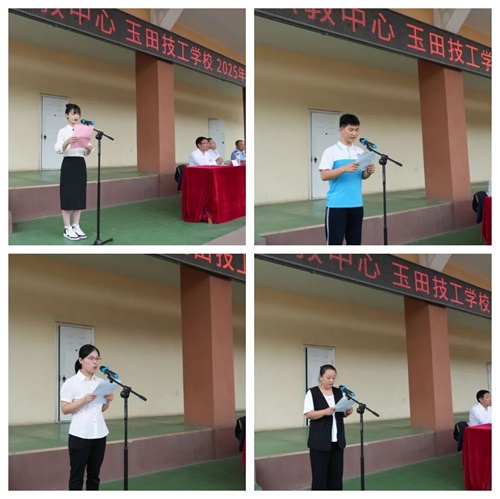 财经专业部25级电子商务三班陈诗琪作为新生代表,表达了对职教生活的憧憬与决心;机修专业部24级机制二班王胜俊浩作为老生代表,分享了在校成长的收获与感悟;机修专业部刘志霞老师作为教师代表,承诺将以爱心与专业助力学生成才;综合专业部25级园林畜禽班刘易萌家长作为家长代表,表达了对学校的认可,并呼吁家校协同共促学生发展。