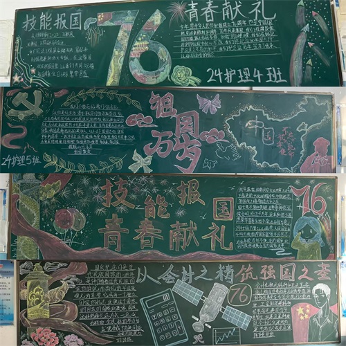 学校开展庆祝建国76周年黑板报评比活动。各班级围绕“辉煌76载”主题,勾勒祖国从建国初期探索到新时代奋进的历程;部分班级聚焦“科技强国”,展示我国在航天、高铁等领域的成就,激发师生民族自豪感。