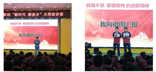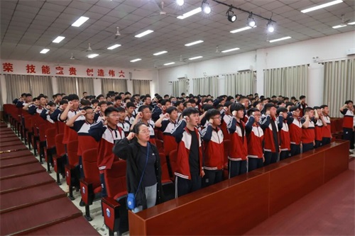 “你所站立的地方,正是你的中国;你怎么样,中国便怎么样!”课堂尾声,刘杰老师带领师生重温鲁迅先生的箴言,23焊工班阚一凯、24焊工班王佳晨等同学依次上台“向祖国汇报”。最后,全场起立齐声告白:“请党放心,强国有我!”响亮的誓言回荡在校园,成为这堂思政课最有力的收尾。