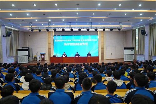 金风送爽,丹桂沁香。十月的玉田职教中心校园,不仅有秋阳的暖意,更涌动着产教融合的蓬勃活力。10月23日,学校“百家企业进校园”系列活动迎来高光时刻——享誉全球的智能制造领军者海尔集团,携智能制造领域的前沿理念与实践经验,开启一场“智”汇校园、“职”引未来的专题交流盛宴,为学校产教融合的画卷添上了浓墨重彩的一笔。