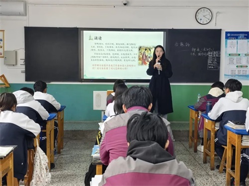 董辰老师以初中所学《关雎》《蒹葭》等爱情诗词导入,迅速拉近学生与古典诗词的距离;随后介绍柳永及其“北宋婉约派代表词人”的身份,延伸对比婉约派与豪放派的风格差异,拓宽学生文学认知;课堂中,她先带领学生听示范朗读、纠字音,再疏通词意,重点聚焦“寒蝉凄切”“杨柳岸晓风残月”等经典意象,引导学生体会“情景交融、虚实相生”的艺术手法;最后深入探讨词中离愁别绪与人生感慨,让学生感受柳永词“铺叙点染、婉约深情”的语言风格,全程注重朗读品味与审美体验,助力提升学生的古典文学鉴赏能力。