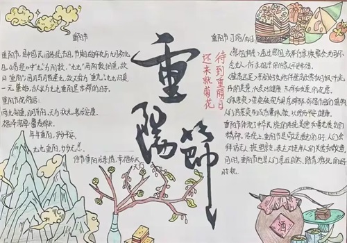 班会课后,同学们以笔为媒,用色彩勾勒重阳习俗,用文字书写敬老感悟,将对长辈的祝福、对师德的敬仰、对家风的理解融入手抄报中。