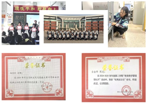 作为班主任,白金环老师深知责任重于泰山。面对正处于青春迷茫期、行为习惯养成关键期的中职学生,她用母亲般的慈爱、朋友般的理解、师长般的引导,全身心投入班级管理。她坚信“没有爱就没有教育”。她秉承“严而有格,爱而有度”的原则,建立健全班级管理制度,狠抓日常行为规范和文明礼仪教育,营造积极向上、纪律严明、和谐包容的班风学风,所带班级多次获得“优秀班集体”荣誉称号。2024年她参加中职班主任能力大赛,荣获唐山市一等奖。
