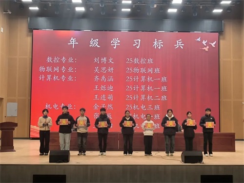 表彰环节是大会的核心亮点。高一年级主任助理崔志会依次宣读了45名班级学习标兵、30名单科状元及8名年级学习标兵的获奖名单,并由艾福顺、刘一洁、赵婉茹三位老师为获奖学生颁奖,这不仅是对优秀学生努力付出的认可,更激发了全体同学争先创优的热情。随后,年级学习标兵代表25机电一班张辰同学分享了自己的学习经验,从时间规划、错题整理、学科平衡等实用角度出发,毫无保留地传递高效学习方法。