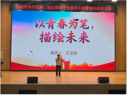 演讲比赛现场,同学们精神饱满、意气风发。他们围绕理想信念、青春奋斗、职教追梦等主题,结合自身对口升学的目标与规划,用真挚的情感、生动的语言诠释“出彩职中人”的内涵——“中职不是终点,而是通往理想大学的新起点,我要通过对口升学圆梦本科!”“备考路上的每一次刷题、每一次背诵,都是在为未来铺路”,选手们或慷慨激昂、或娓娓道来,分享着学习路上的坚持与感悟,畅谈对未来职业的憧憬与追求,字字句句饱含着对梦想的执着,展现了高一年级学子奋发向上、笃行不怠的精神风貌,赢得现场师生的阵阵掌声。