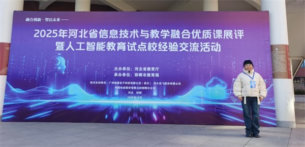 根据河北省教育技术中心统一安排,2025年河北省信息技术与教学融合优质课展评暨人工智能教育试点校经验交流活动,于2025年12月25日至27日在邯郸市正式举行。杨香敬老师作为获奖教师代表,在此次省级活动中进行展示与交流,精彩表现赢得与会专家的一致好评。