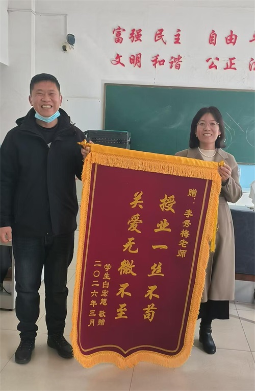 一面锦旗,承载认可与期许。李秀梅老师将坚守育人初心,以匠心执教、以爱心育人,继续扎根职教讲台,助力更多学子技能成才、绽放光彩。