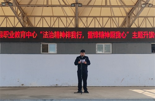 春风送暖,朝阳正好。3月16日上午,滦南县职业教育中心隆重举行“法治精神伴我行 雷锋精神照我心”主题升旗仪式。西城派出所警官董彪、校团委书记张杰主讲。政教处副主任吴一丹主持活动。