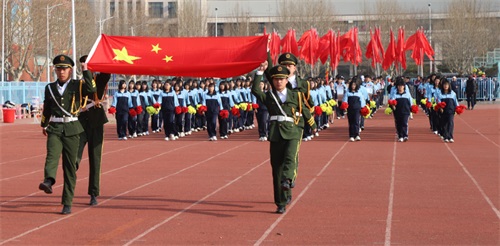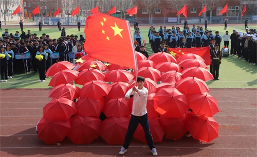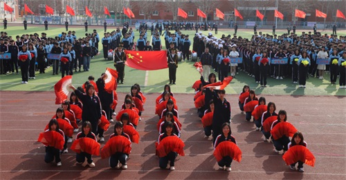 全体师生肃立注目,爱国情怀与运动激情交织升腾。