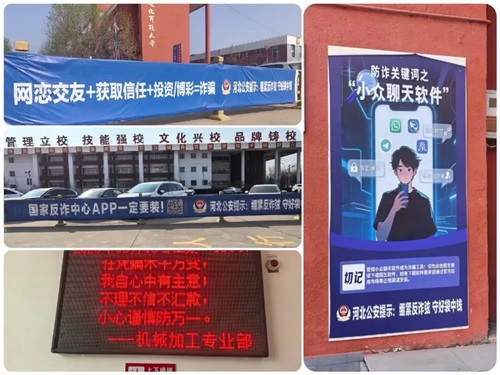 为营造浓厚的反诈教育氛围,学校在校园宣传栏、操场等醒目位置张贴反诈宣传标语,以简洁有力、朗朗上口的文字,将反诈提醒融入校园日常环境。