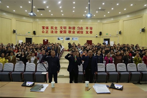为认真落实全国教育大会精神,贯彻全区教育大会暨三年提升计划动员大会战略部署,响应教育局开展师德师风提升年活动的通知要求,推动学校质量全面提升,促进学校深化改革,我校隆重举行了“师德师风提升活动动员会暨学准则铸师魂三诺启动仪式”。副校长冷建增主持。学校党总支副书记、副校长孙宏伟领誓并讲话。