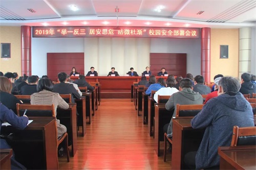 2019年4月16日下午,学校召开了主题为“举一反三,居安思危,防微杜渐”的校园安全工作部署会议。学校中层以上领导、值班人员、班主任、生活教师、文体教师、心理教师、教研组长、实训指导教师、顶岗实习指导教师、各处室安全员、食堂及医务室托管负责人悉数参加了会议。