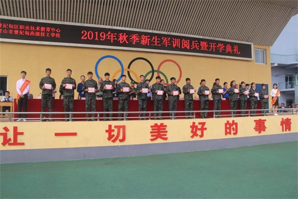 9月12日上午,曹妃甸区职教中心隆重举行2019年秋季新生阅兵暨开学典礼。区人武部、区教育体育局相关负责同志、各中学领导以及四百五十余名新生家长出席了典礼仪式。
