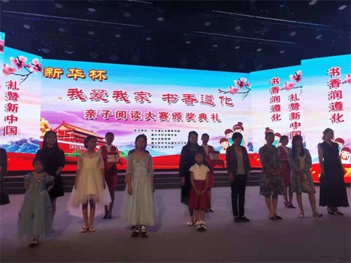 9月30日,在遵化市教育局组织的“新华杯"我爱我家 书香遵化 亲子阅读大赛颁奖典礼中进行礼仪服务。