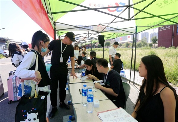 唐山实验中等专业学校校长谭靖、党委书记林长江及各二级学院院长、职能部门负责人,深入现场每一处报到点了解实际情况。学校领导对迎新工作高度重视,务必做好责任强化与担当,精准把控疫情下的迎新工作。在巡查与检查迎新工作时,校领导及相关部门负责人深入了解“迎新”细节,一方面了解注册及报到的实际工作,另一方面也提醒后勤工作人员及新班班主任结合实际摸查学生、家长情况及其他到校人员,做到“迎新日”精准防控,联防联控,做好新生入学的校园安全防范工作。