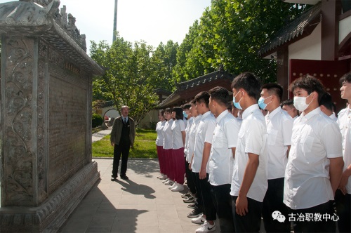 在参观屈原纪念馆时,整个馆厅格局呈品字型,正厅“屈子祠”中央安放着屈原铜像,东侧“清烈”厅、西侧“忠洁”厅,分别摆放了楚国时期的文物展品。由纪念馆副馆长、屈原第七十代孙屈玉洁亲自讲解,介绍了屈原生平、楚国文化、古冶屈氏的源流、革命先驱在古冶的工作、战斗足迹、古冶的发展历程;着重介绍屈原作品和屈氏源流。听着屈馆长的讲解,师生们都被屈原那浓浓的爱国主义情怀所感动,内心久久不能平静。