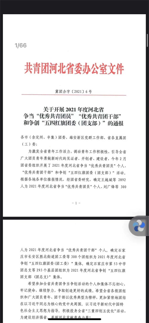 日前,共青团河北省委办公室发布通报,公布了2021年度河北省争当“优秀共青团员”个人名单,曹妃甸区职教中心机电技术系19秋机电大专班李鑫博同学被评为2021年度河北省争当“优秀共青团员”。