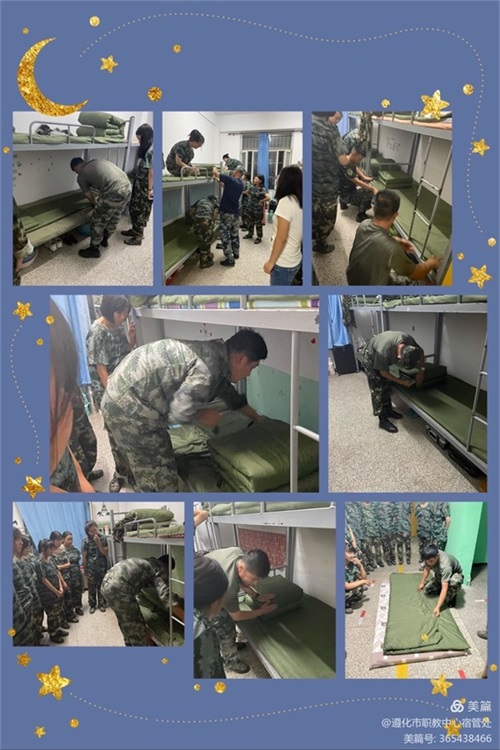 教官叠的非常棒,我们自己也要努力去练习。教官和班主任全程跟踪指导,宿管处赵守庆主任,王仁政副主任,各专业部主任到宿舍巡视指导,帮助新生快速掌握整理内务的要领。