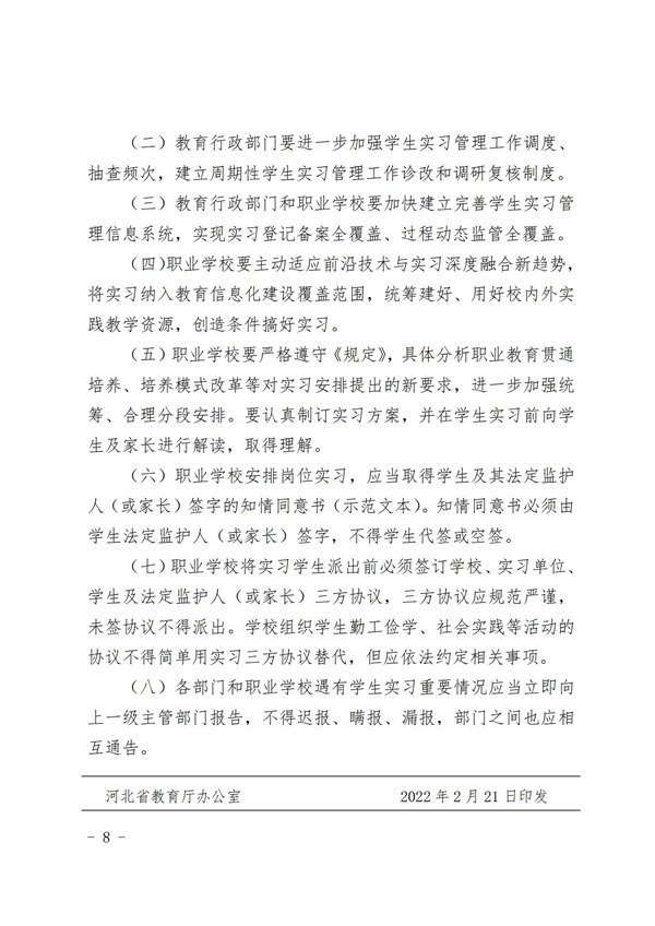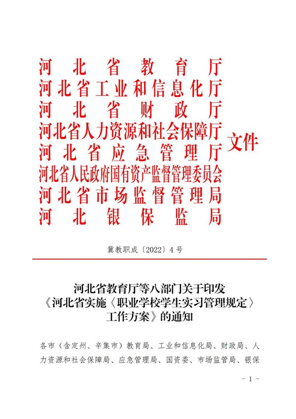 唐山市教育局等八部门关于转发河北省教育厅等八部门 《河北省实施〈职业学校学生实习管理规定〉工作方案》的通知