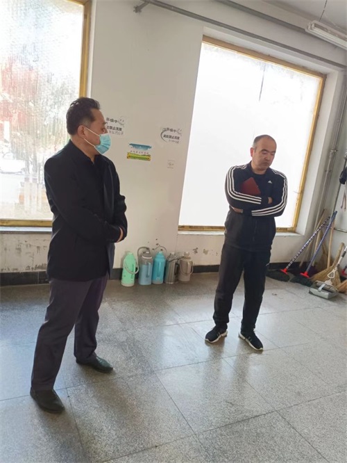 检查组先后到学校大门口、校园外周边、学生宿舍、校园的各个角落等地进行实地查看。重点对宣传标语、环境卫生、安全隐患等情况进行检查。现场查问题、找短板,要求各位相关主任尽快安排落实整改。
