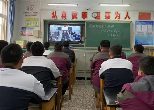 为深入贯彻习近平总书记关于“大思政课”建设的重要指示精神,充分发挥思政课在落实立德树人根本任务中的关键作用,按照区教育体育局关于组织开展全区中小学生共上一节思政课活动的通知要求,4月3日下午,曹妃甸区职教中心组织全体学生在校多功能厅和各班教室直播观看学习《高扬爱国主义旗帜 争做时代新人》主题思政课。