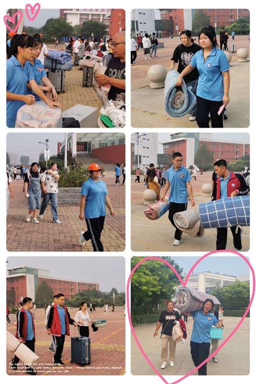 弘扬志愿精神,助力新生返校。在校老生分工明确,互相配合,帮助新生搬送行李、指引道路,用实际行动为新生报到提供了便利。一声声“我帮你拿”“请家长放心”,一个个蓝色的身影穿梭在校园,构成了一道道靓丽的风景线,赢得了学生及家长的一致好评,不仅为新生学子们带来了温暖的入学体验,也带来了一个充满生机与希望的新学期开始。