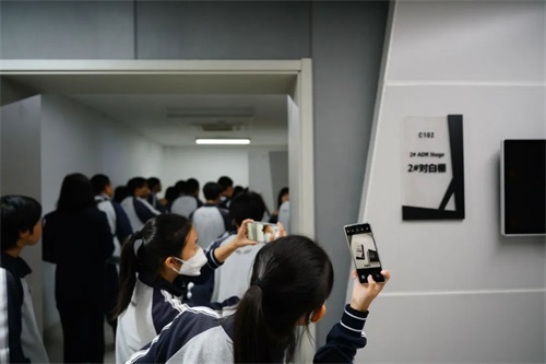 中信国安的工作人员带领学生们参观实习基地,包括摄影棚、调色棚、技术设备室、音频编辑室、对白棚、绿幕棚等,通过详细讲解,让同学们近距离沉浸式体验到影视作品的拍摄创作及后期制作过程。校企双方领导针对合作育人发展模式展开交流。