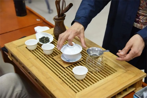 一道道工艺蕴含着茶文化的精髓,娴熟利落的茶艺手法展现着职业教育的优雅与从容。王晖老师和女职工们共同沏泡西湖龙井茶,在妇女节这个特殊的节日里,陪伴女职工们在喧嚣中寻求淡雅,在空灵中感受自然,以袅袅茶香为路北区人社局女职工增添无限雅致逸趣。