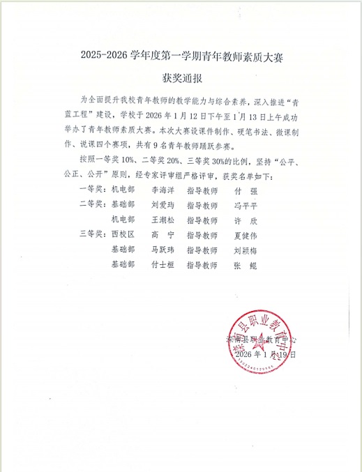滦南县职业教育中心青年教师素质大赛获奖通报