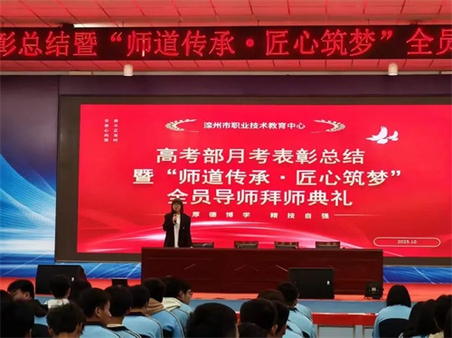 十月硕果满枝,滦州市职教中心高考部举行首次月考总结表彰暨“师道传承・匠心筑梦”全员导师拜师典礼。领导、老师、家长与学生齐聚礼堂,共庆拼搏成果,开启育人新篇。