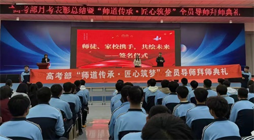 表彰掌声未息,庄重的拜师礼已然登场。为落实“全员导师制”,高考部以传统拜师礼为载体,开启“师带徒、传帮带”的育人新模式。