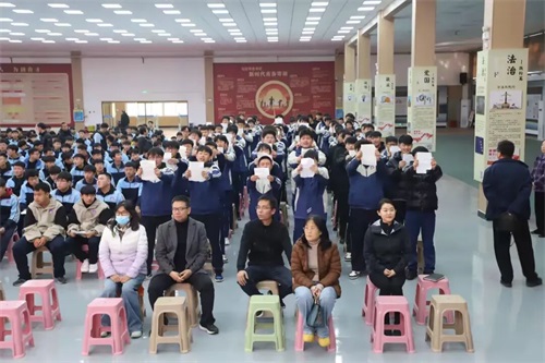 同学们手持励志信,双臂高擎,字句铿锵有力。洪亮之声回荡礼堂。诵读励志信,不仅让同学们坚定信念、明确方向,更将文字力量转化为学习动力,提振精神面貌。