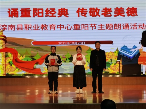 金菊吐蕊,丹桂飘香。在传统重阳佳节来临之际,为弘扬中华民族尊老敬老的优良传统,丰富校园文化生活,10月28日下午,滦南县职业教育中心举行“诵重阳经典 传敬老美德”诗词朗诵比赛。学校领导、评委老师及400余名学生共同观看了这场充满温情与诗意的视听盛宴。