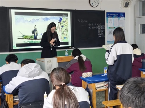 董辰老师以初中所学《关雎》《蒹葭》等爱情诗词导入,迅速拉近学生与古典诗词的距离;随后介绍柳永及其“北宋婉约派代表词人”的身份,延伸对比婉约派与豪放派的风格差异,拓宽学生文学认知;课堂中,她先带领学生听示范朗读、纠字音,再疏通词意,重点聚焦“寒蝉凄切”“杨柳岸晓风残月”等经典意象,引导学生体会“情景交融、虚实相生”的艺术手法;最后深入探讨词中离愁别绪与人生感慨,让学生感受柳永词“铺叙点染、婉约深情”的语言风格,全程注重朗读品味与审美体验,助力提升学生的古典文学鉴赏能力。
