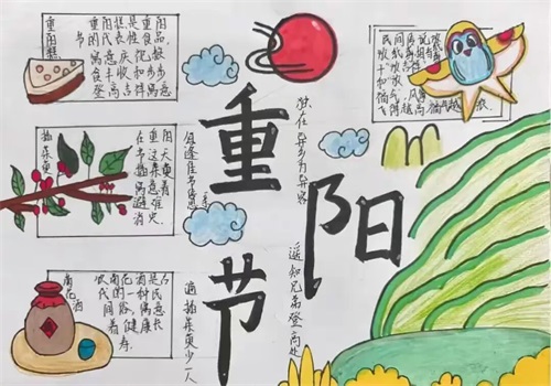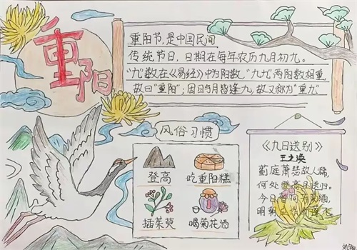 班会课后,同学们以笔为媒,用色彩勾勒重阳习俗,用文字书写敬老感悟,将对长辈的祝福、对师德的敬仰、对家风的理解融入手抄报中。