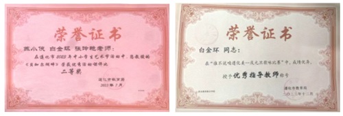 她善于发掘不同学生的音乐潜能,因材施教,让每个学生都能在课堂上找到自信和乐趣,鼓励学生积极参加校内外艺术展演和比赛,多次在市级艺术节活动中获奖。2023年她指导学校天音合唱团获得遵化市合唱比赛二等奖并荣获遵化市优秀指导教师荣誉称号。