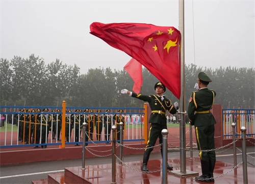 升旗仪式上,全体师生肃立,雄壮国歌声中五星红旗冉冉升起,爱国之情在每个人心中激荡。