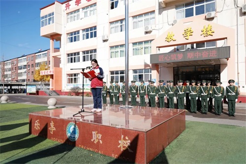 寒风渐起,冬意微醺,时光的脚步悄然迈入奋进的十一月。2025年11月10日上午,乐亭职校全体师生齐聚国旗台下,隆重举行以“匠心筑梦 期中奋进”为主题的升旗仪式。这是一次对过往学习的审视,更是一次向着未来目标的再动员。