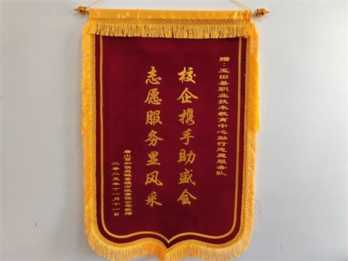 “校企携手助盛会,志愿服务显风采”——锦旗上的烫金大字,正是我校志愿服务队以实际行动书写的青春答卷。在玉田县第四届电商节中,我校学生志愿者承担会议服务、礼仪接待等工作,他们精神饱满、服务周到,展现了扎实的专业素养与良好的精神风貌,赢得了主办方和与会嘉宾的一致好评。 多年来,我校积极推动志愿服务常态化、项目化发展,与企业、乡村、养老院、社区等单位建立紧密合作关系,以党建带动团建,广泛开展会展服务、环境整治、敬老助老、科普宣传、设施维护等形式多样的志愿活动。2022年,我校某志愿服务队被评为某地志愿服务创新项目,充分彰显了职教学子的社会责任与时代担当。
