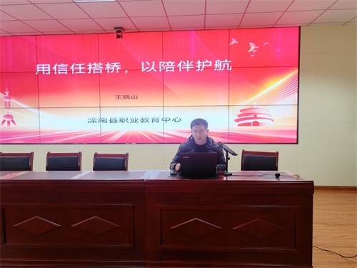 11月19日下午,滦南县职业教育中心在隆重而专业的氛围中,成功举办以“经验分享促成长,匠心育人绽芳华”为主题的班主任工作经验交流会。会议由政教处主任李志远主持,校党委副书记、校长晁树山,副校长张新军,各部门负责人及全体班主任共同参与。