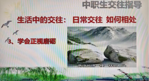 和谐的人际关系,是青少年心理健康的重要基石,也是塑造健康心理的关键源泉。为帮助中职学子树立正确人际交往观念,妥善化解沟通中的矛盾摩擦,12月2日,乐亭职校汽车工程系开展了“向阳而生 向美而行”主题德育课堂——中职生交往指导活动,本次活动由系主任刘杰主讲。