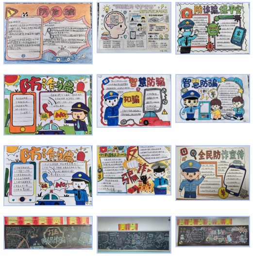 活动伊始,各班级积极响应,同学们充分发挥创意与才智,将反诈主题融入黑板报与手抄报创作。一方方黑板报图文并茂,一幅幅手抄报色彩鲜明,“未知链接不点击,陌生来电不轻信”“紧绷防范之弦,远离诈骗之害”等标语醒目有力。同学们用手中的画笔描绘出常见的诈骗陷阱、生动的防骗技巧和坚定的反诈决心,在方寸之间构建起视觉化的反诈宣传阵地。
