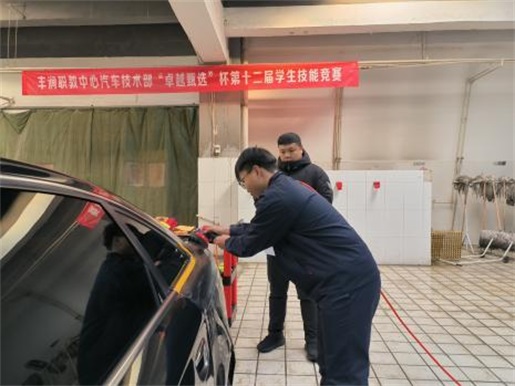 2025年12月5日,丰润职教中心汽车技术部第十二届“卓越甄选”杯学生技能竞赛(汽车美容赛项)圆满结束。本次大赛以“以技比‘美’,蜡釉竞优”为导向,既是汽修专业学生汽美技能水平的集中比拼,也是对教学成果的集中检验。校领导、教务处、实训中心和专业部负责人现场观摩指导。